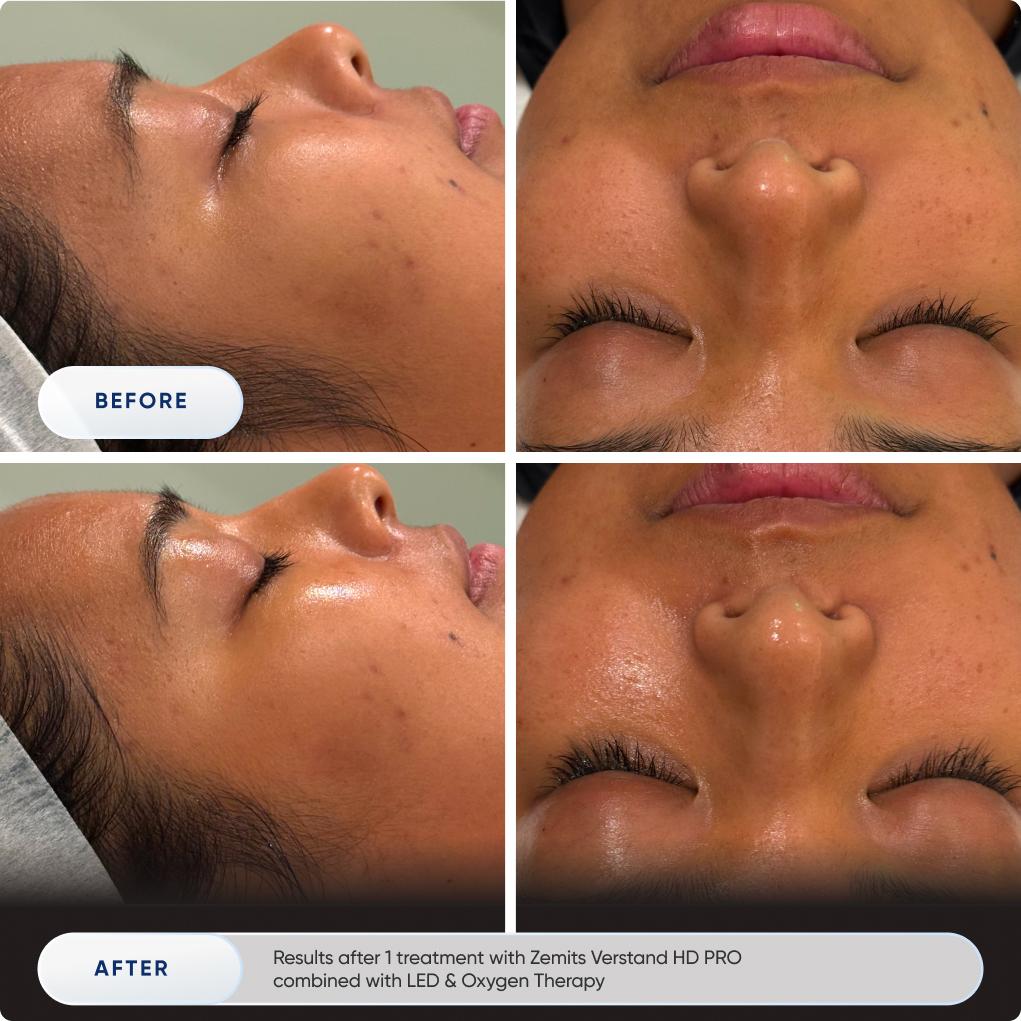Instead of a single-modality approach, we combined chemical exfoliation with the healing power of Zemits oxygen and light technologies. This ensures that the "trauma" of the peel is immediately mitigated by high-purity oxygen and biostimulation.