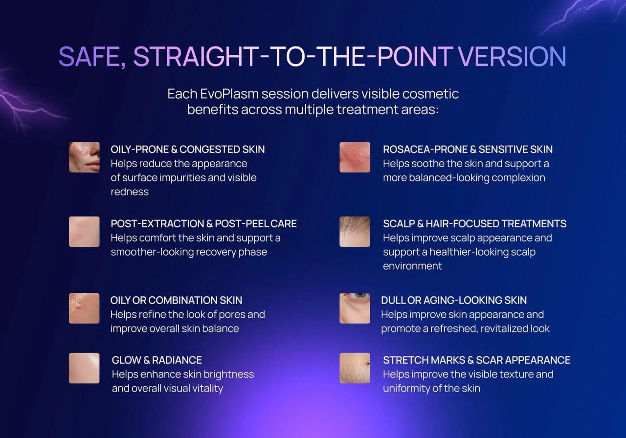 Clients who experience treatments enhanced with Zemits EvoPlasm commonly report: